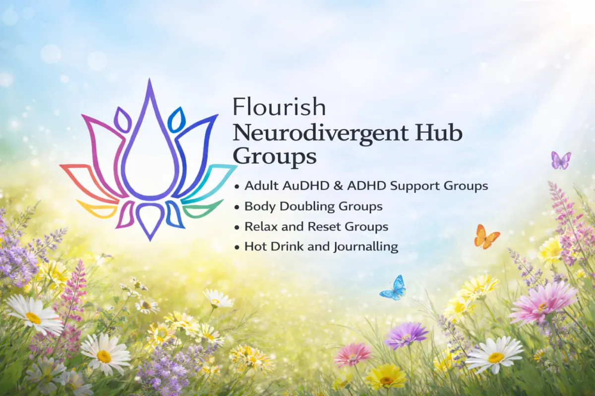 Flourish with Neurodiversity host frequent groups for those needing more support- including AuDHD Support Groups, Body Doubling, Relax and Reset sessions, and hot drink & Journaling Groups. These are either free ot are discounted for members of the Neurodivergent Hub and are bookable via the forum. Sign up for free below.